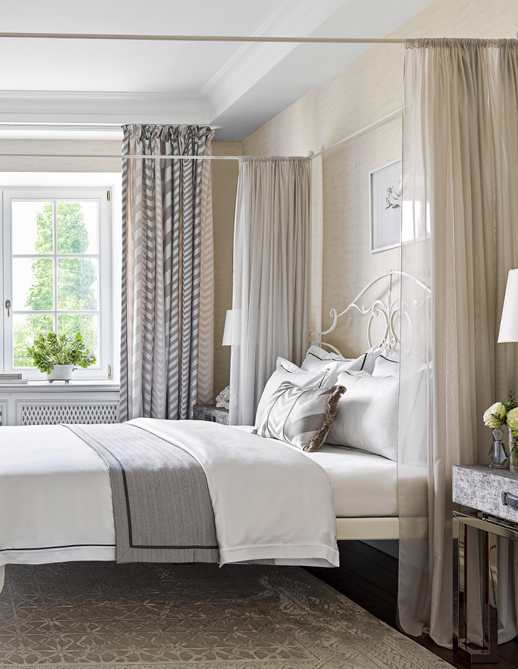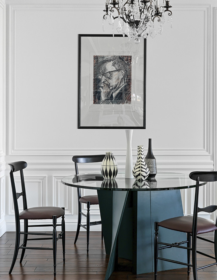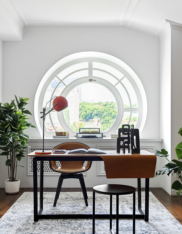 In Voronezh’s old town, in southwestern Russia, a two-level penthouse has been completely redesigned with the intention of conjuring up the atmosphere of a country house. The Muscovite architect Nataliia Molbo took on and overcame this challenge by accentuating the splendid views over the treetops of the surrounding gardens and decorating the interiors with a French-inspired sophisticated elegance.