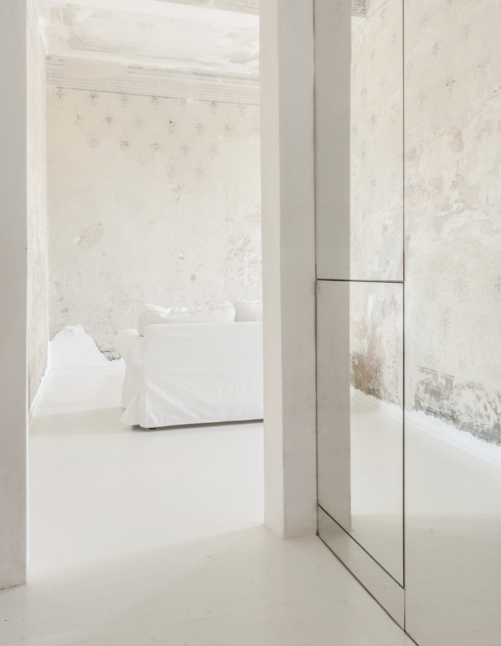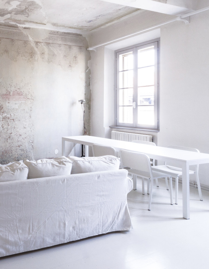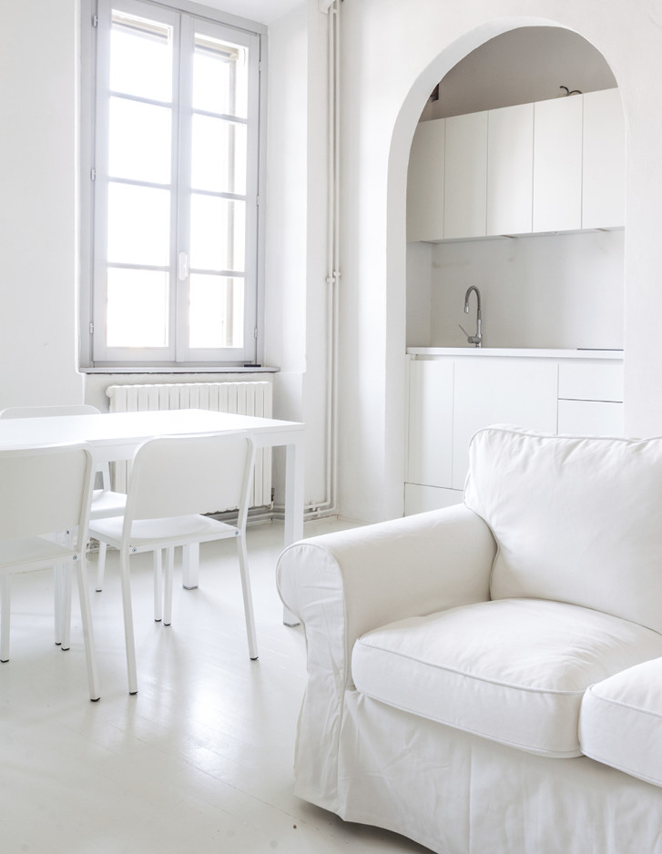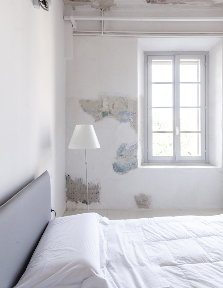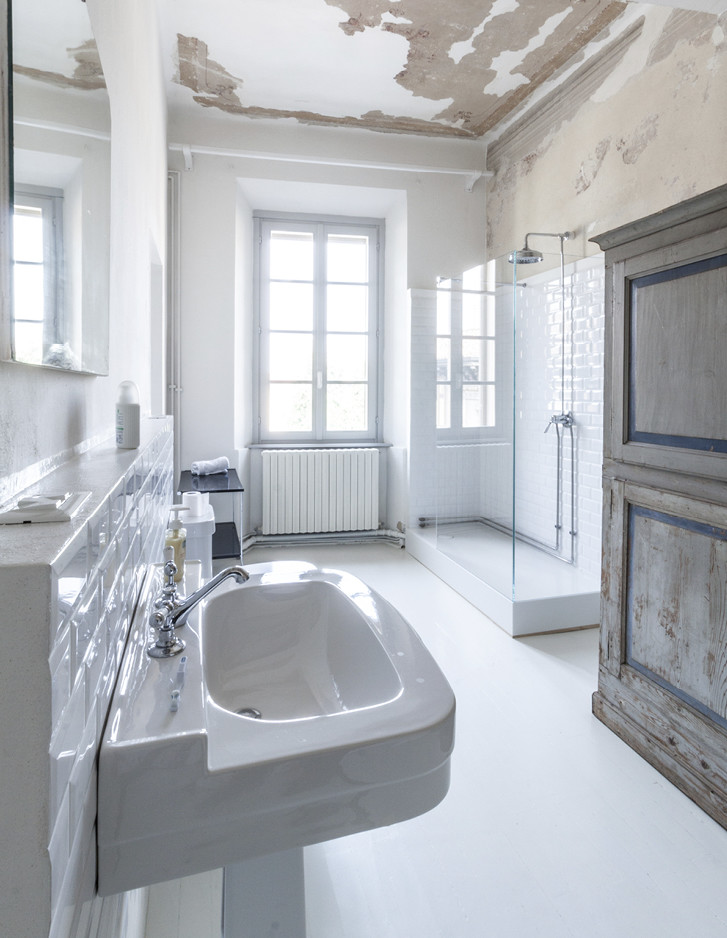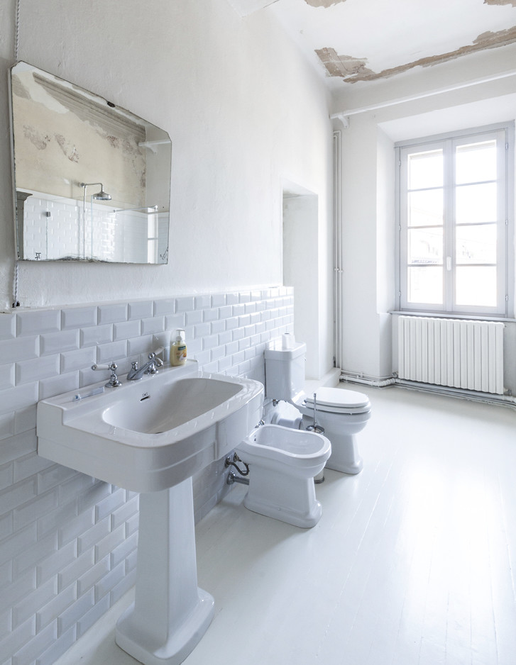 Im historischen Stadtzentrum, das auf der ganzen Welt für die prächtigen Fresken von Andrea Mantegna berühmt ist, wurde eine Eigentumswohnung restauriert, wobei die mit antiken Wandmalereien verzierten Wände und Decken sorgfältig erhalten wurden. Um die Räumlichkeiten der kleinen Wohnung zu erweitern und miteinander in Beziehung zu setzen, wurde bei der Gestaltung des Hauses auf Weiß und Transparenz gesetzt. In dem weißen Badezimmer im ausgesprochenen Retro-Stil sind das Waschbecken Bogart mit den Armaturen Dandy, der Keramikverkleidung Brick und den Sanitäranlagen Blues perfekt platziert.