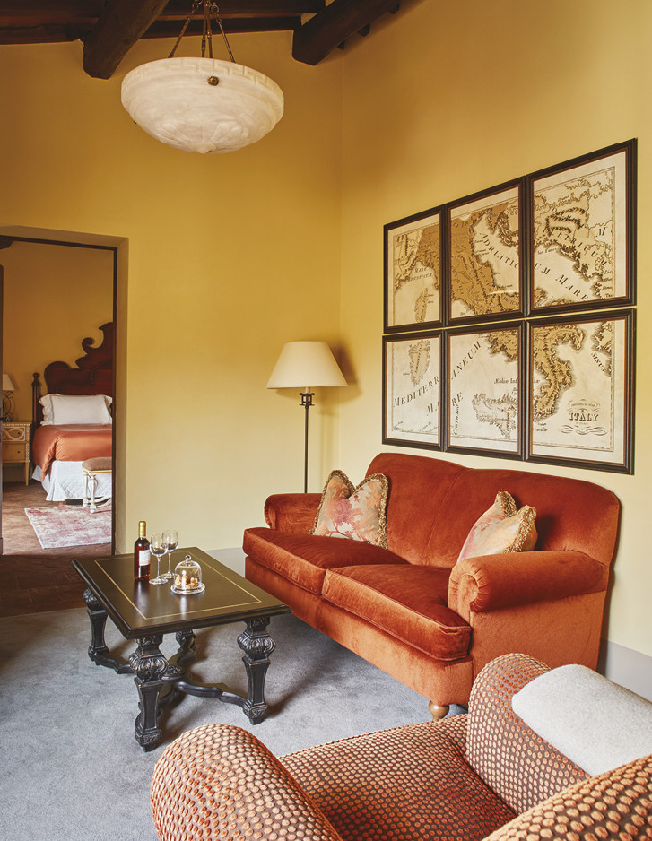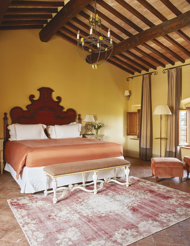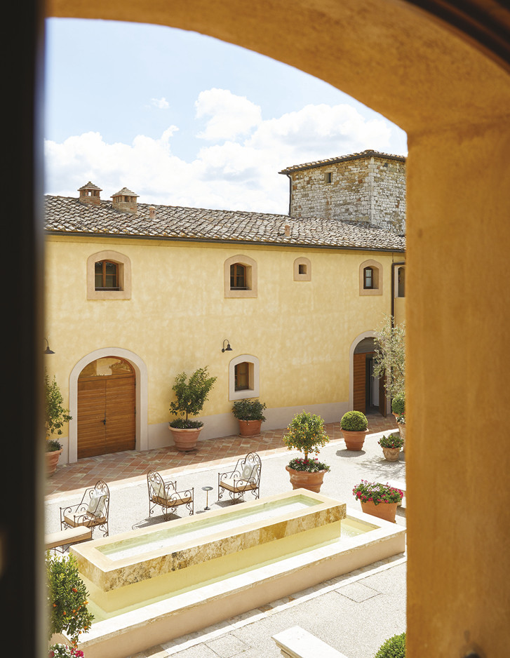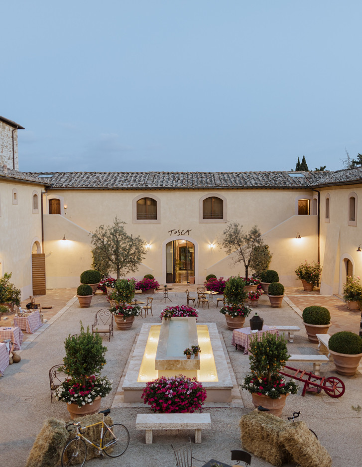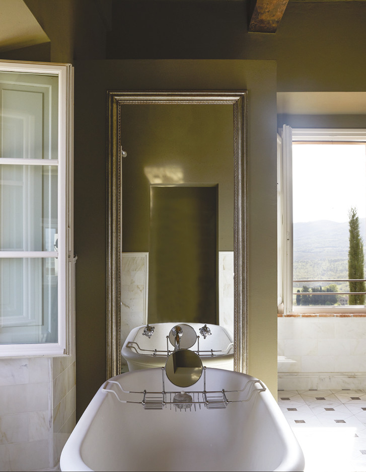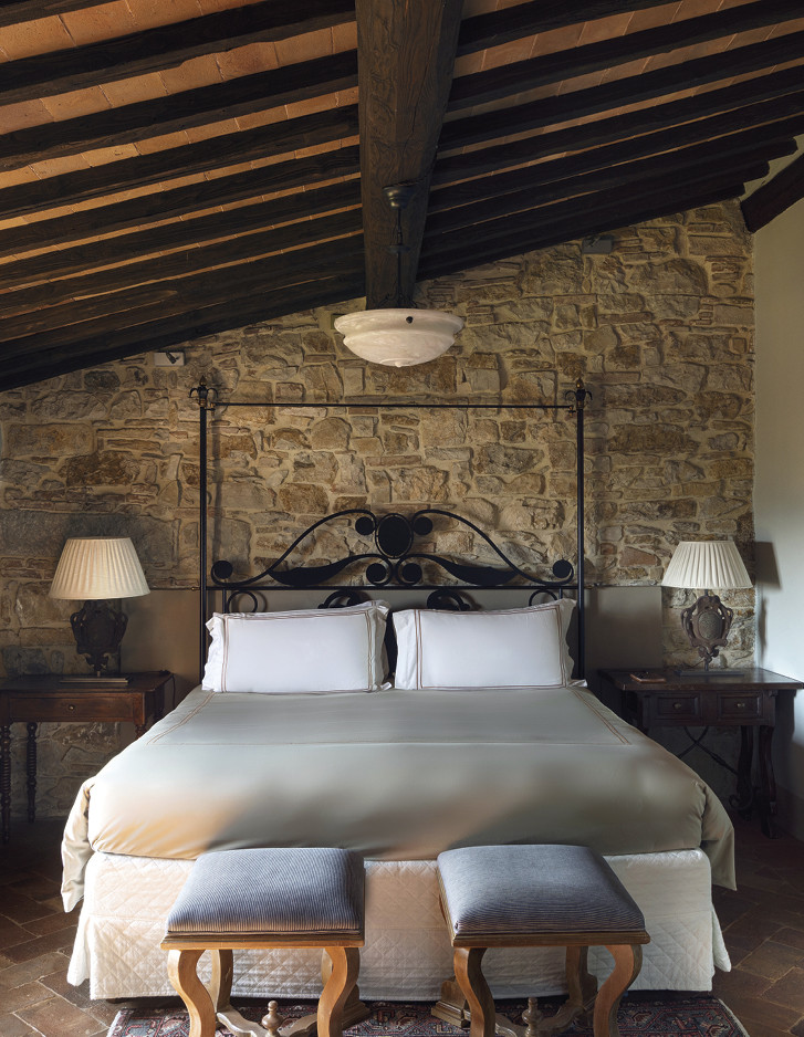 Das Castello di Casole liegt in einer der eindrucksvollsten Gegenden der Provinz Siena und gehört zu einem der größten privaten Landgüter Italiens. Es ermöglicht seinen Gästen, ganz in die Natur und die Geschichte der Toskana einzutauchen. Die Reise in die Vergangenheit beginnt mit zwei von Zypressen gesäumten Alleen, die zur Spitze eines sanften Hügels führen, wo sich das Hauptgebäude der Burg befindet, deren Ursprünge auf das 10. Jahrhundert zurückgehen. Das Anwesen liegt inmitten eines 1700 Hektar großen Areals, das mit Olivenbäumen und Weinreben bepflanzt ist, aus denen weltberühmte Öle und Weine gewonnen werden. In den 38 Zimmern, Suiten und Appartements mit Blick auf die prächtigen mit Rosen- und Zitronenbäumen bepflanzten Gärten fühlt sich der Reisende sofort wie ein Gast und reiht sich damit in eine lange Tradition ein, denn in diesem Gebäude residierten im Laufe der Zeit bereits Angehörige der wichtigsten Königshäuser und Filmstars. Die sorgfältig restaurierten Innenräume sind eine Hommage an die Vergangenheit, ohne das man auf modernen Komfort verzichten muss. Die Arbeiten wurden von ortsansässigen Handwerkern unter Anwendung traditioneller Techniken und unter Wiederverwendung von Holzbalken, Keramik und Terrakottafliesen durchgeführt, die sich bereits auf dem Anwesen befanden. Freigelegte oder handverputzte Steinmauern sowie die Wahl traditioneller Naturholzmöbel und neutraler Farben tragen zu einer einzigartigen und entspannten Atmosphäre bei. Diese Philosophie der Gastfreundschaft wurde auch bei der Auswahl für die eleganten Bäder zugrunde gelegt, in denen einige der bekanntesten Produkte von Devon&Devon wie die freistehenden Badewannen Celine und Fusion, das Waschtischmöbel Regent sowie die Lampen Savoy und Tube perfekt in Szene gesetzt wurden.