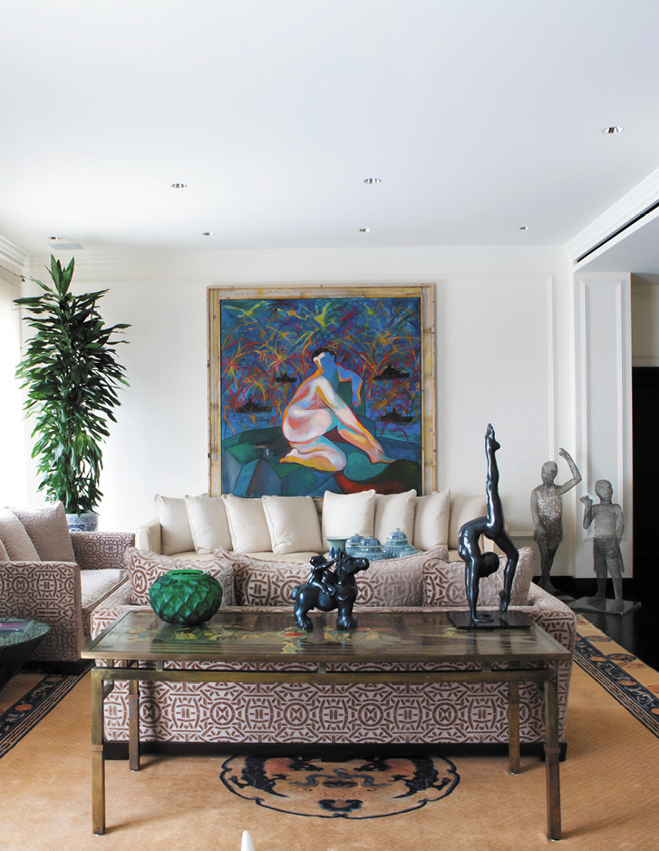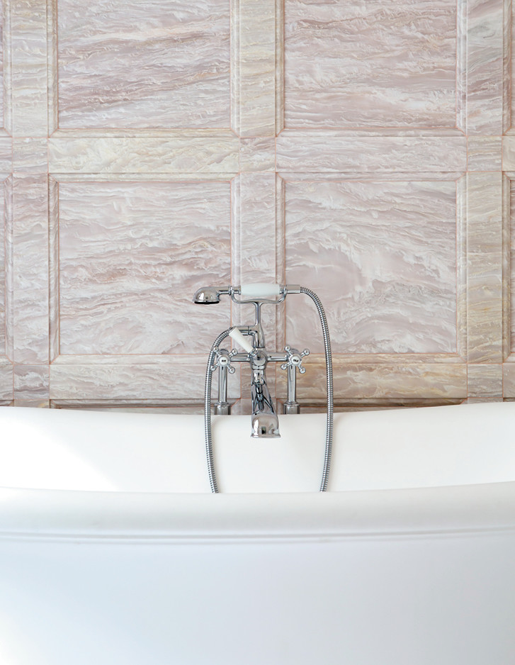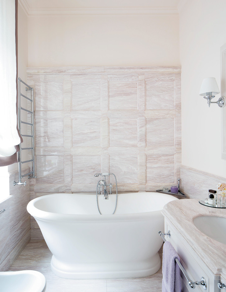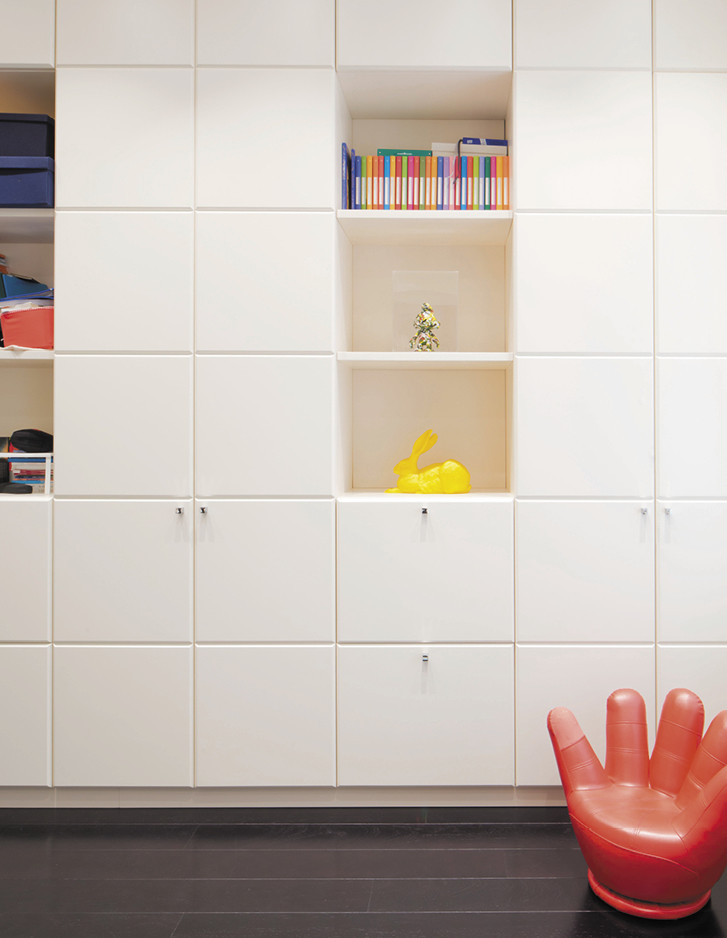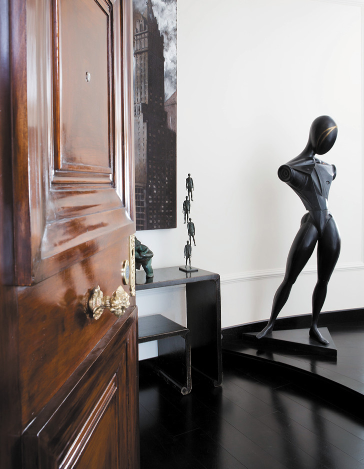 Statuen, Gemälde, Drucke, skulpturale Lampen, Kristall- und Porzellanvasen: es ist die zeitgenössische Kunst, die den Charakter dieser prestigeträchtigen Wohnung bestimmt, die vom Mailänder Architekten Biagio Forino für eine angesehene Sammlerfamilie konzipiert wurde. Die Inneneinrichtung dieses veritablen Haus-Museums ist ganz auf die Kunstwerke ausgerichtet, die das Weiß, Beige, Schwarz und Tiefbraun der Bodenbeläge, Wandverkleidungen und Einrichtungsgegenstände mit Farbakzenten erhellen und deren Neutralität dem Wunsch der Bauherren entspricht, die Szenerie der unvorhersehbaren Abfolge von Werken aus ihrer außergewöhnlichen Privatsammlung der Öffentlichkeit zugänglich zu machen. In den eleganten Badezimmern spielen das neoromantische Design der freistehenden Badewanne Aurora, der kostbare Marmor der Bodenbeläge, Wandverkleidungen und der Abdeckplatte des Waschtischs Season sowie die essenziellen Linien des Spiegels Black Harold mit den maßgefertigten Lampen Time die Hauptrolle.