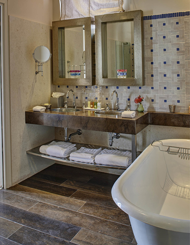 In einem alten gotisch-katalanischen Herrenhaus, das in ein luxuriöses Boutique-Hotel umgewandelt wurde, zeigen die Badewanne Draycott, die Armaturen Black Dandy und City, der Spiegel First Class und der Handtuchwärmer Armonia die erstaunliche Vielseitigkeit der Kollektionen von Devon&Devon, die sich in perfekter Harmonie in die unterschiedlichen ästhetischen Konfigurationen der zwölf Suiten einfügen.