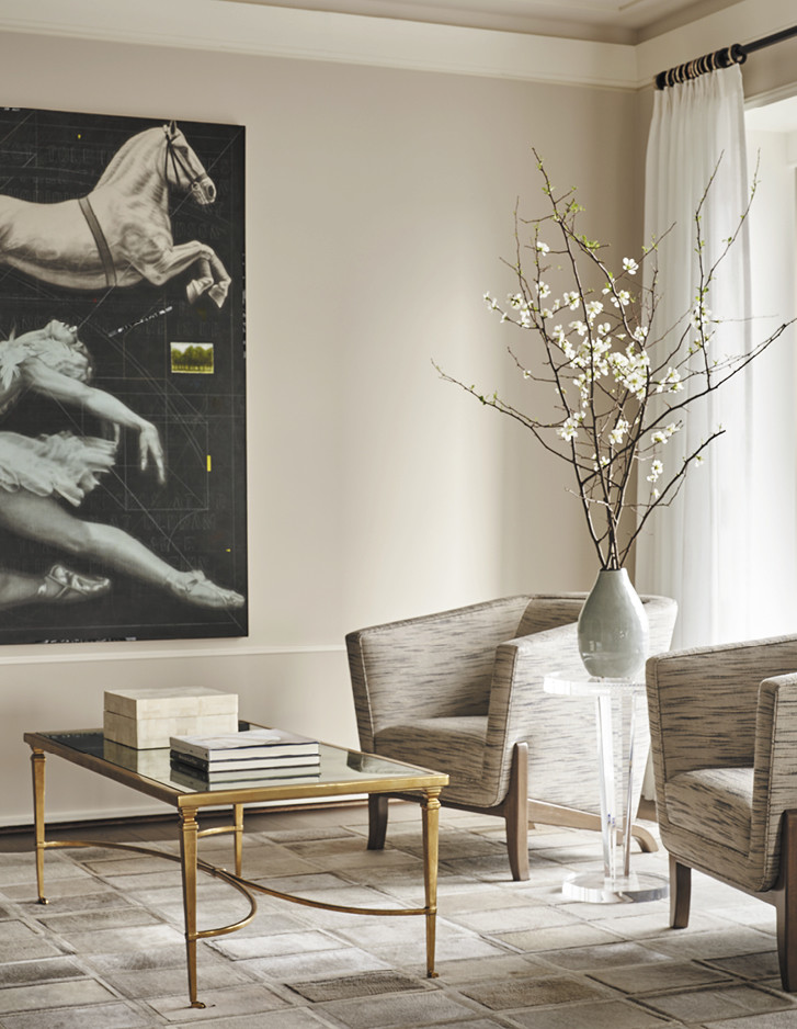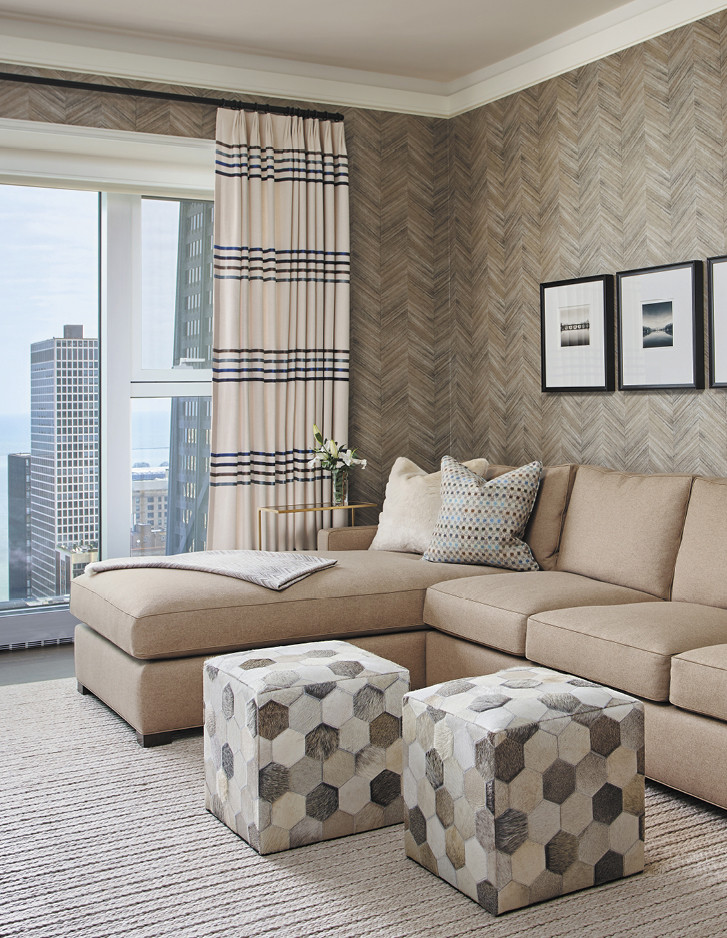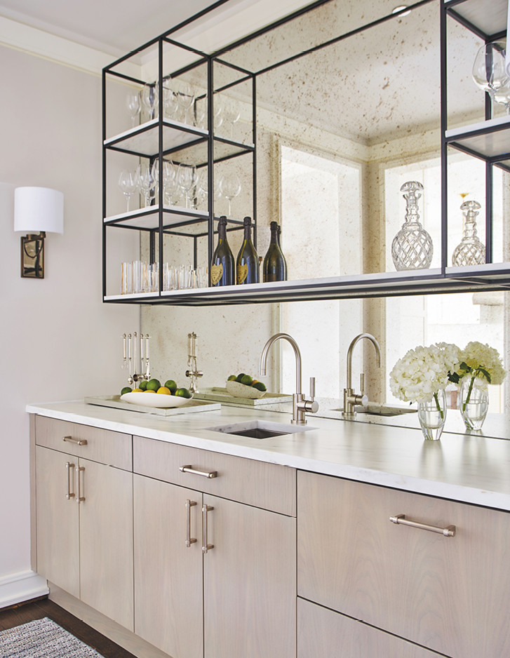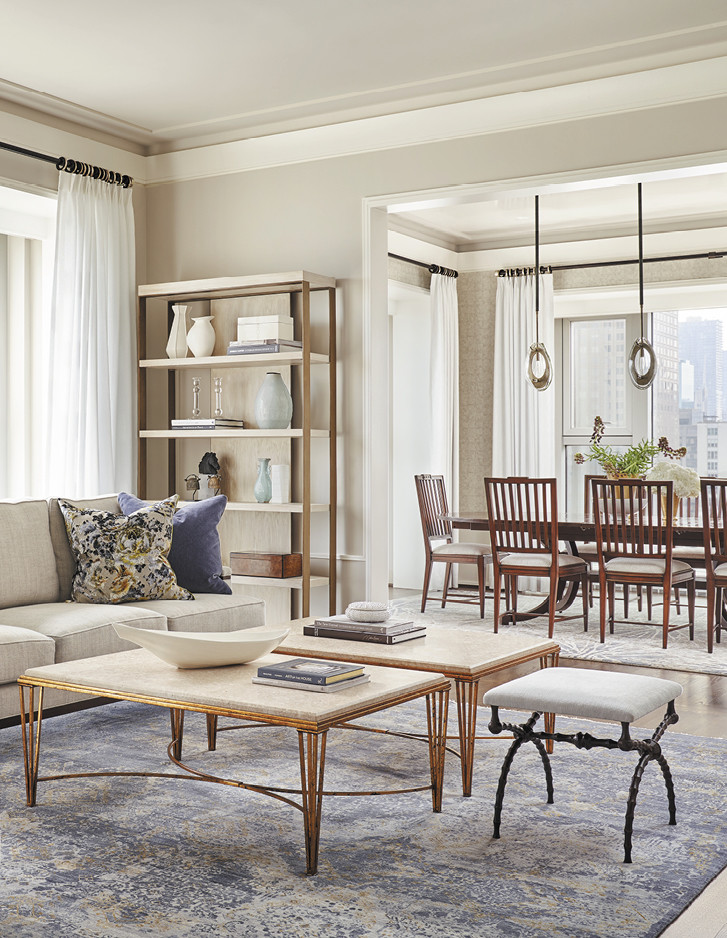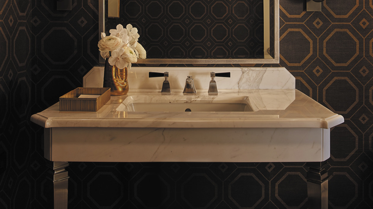 Atemberaubende Aussichten und ein raffiniertes Innenraumdesign machen diese repräsentative Wohnung im Herzen der Gold Coast einzigartig. Sowohl die gemeinschaftlich genutzten Bereiche als auch die individuellen Zimmer sind gleichermaßen mit Licht durchflutet, das durch die großen Glaswände mit Blick auf die berühmtesten Wahrzeichen der Stadt gelangt. Das Projekt wurde vom amerikanischen Boutique-Studio Kim Scodro Interiors entworfen und hält die Atmosphäre in einem perfekten Gleichgewicht zwischen der klassizistischen Gesamtstruktur und einem Hauch von Exzentrik, der für bestimmte Räume reserviert ist. Zu diesen gehört das beeindruckende Badezimmer, das – im Gegensatz zu den hellen, neutralen Tönen der restlichen Wohnung – durch die Gold- und Schwarztöne der Decken und Wandverkleidungen, die warmen Töne der Messing-Accessoires und den kostbaren Marmor des Waschtischs Epoque mit den exklusiven Armaturen Vip Time im 30er-Jahre-Stil beeindruckt.
