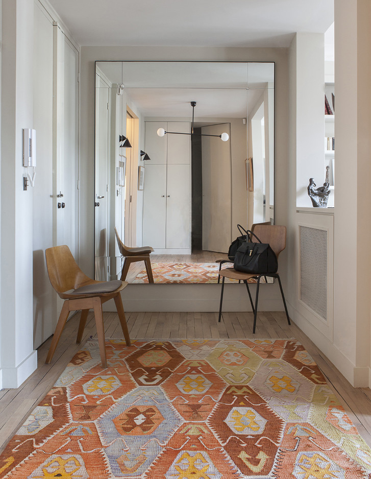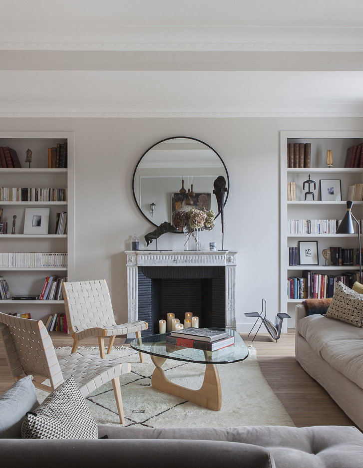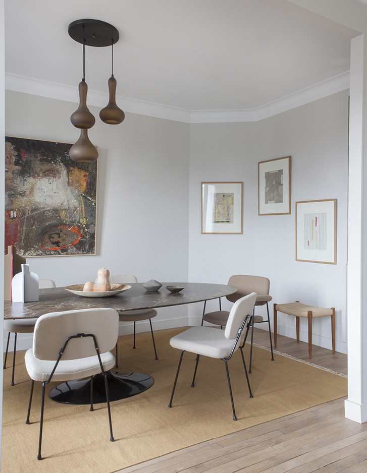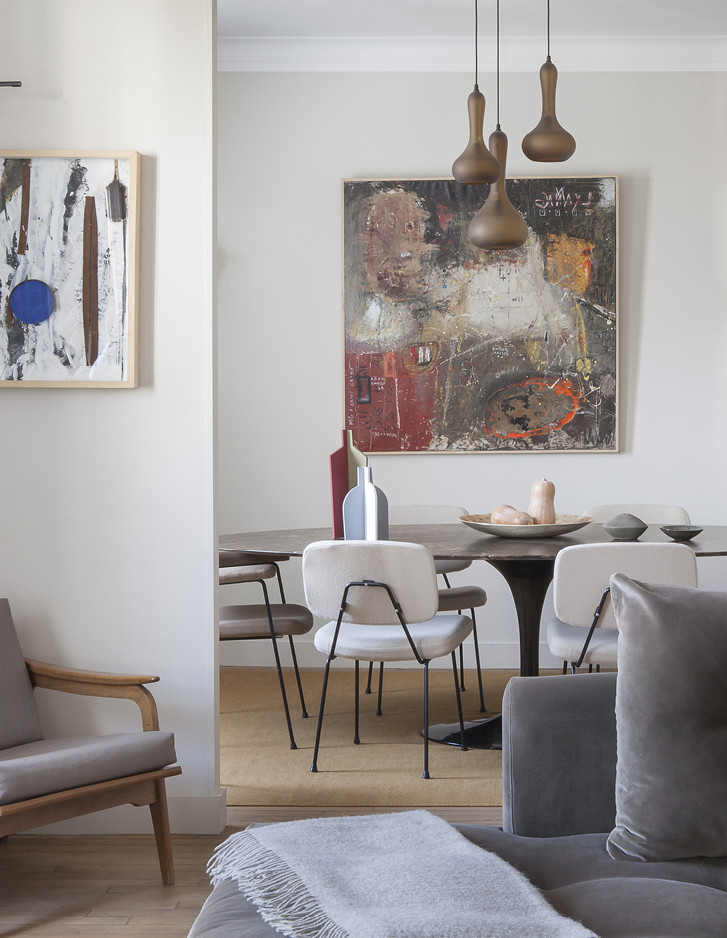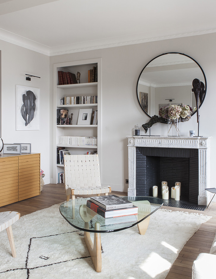 In einem Gebäude aus den 1930er-Jahren erzeugen Weiß, Schwarz und die Wärme von natürlichem Holz die raffinierte Atmosphäre einer Pariser Wohnung, in der das Studio Living Concept von Magalie Varcourt Vintage-Inspirationen mit überraschender Natürlichkeit aufgegriffen hat.