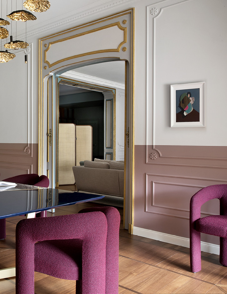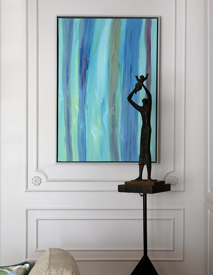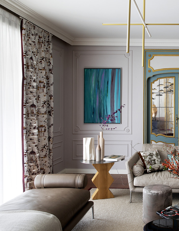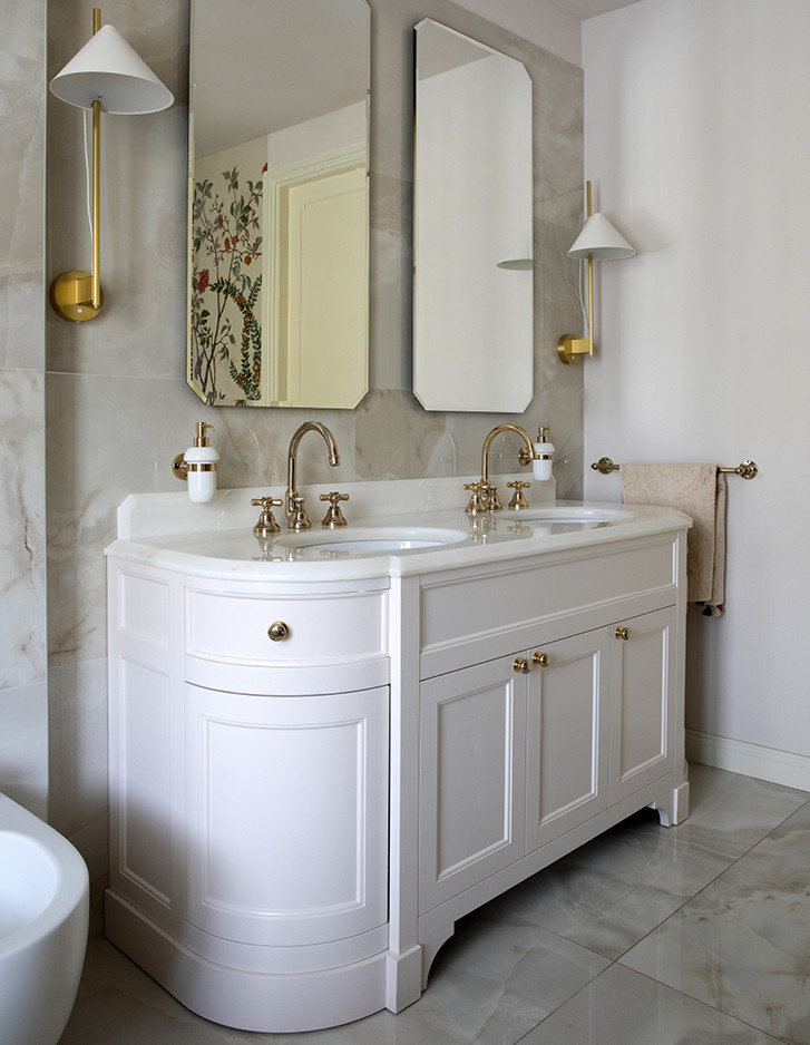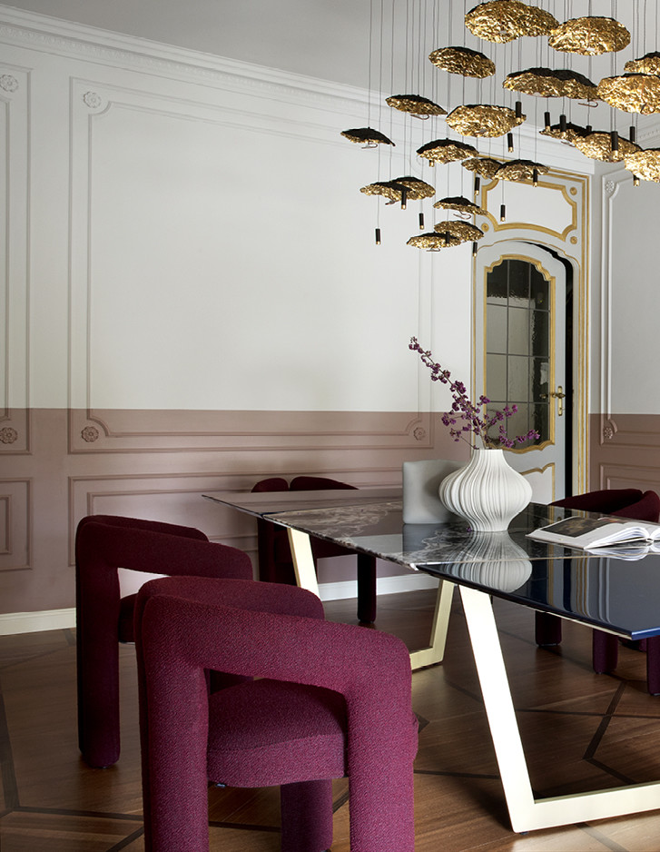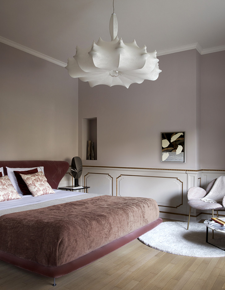 Im exklusivsten Stadtteil von Turin wurde eine historische Familienresidenz vom Studio Fragomeli & Partners zu einem gleichermaßen kostbaren wie erstaunlichen Kleinod umgestaltet. Eine gedämpfte Farbpalette, die durch Zwischentöne in Blau, Grau und Rosa bestimmt wird, erzeugt eine luftige Atmosphäre, die als Hintergrund für die geometrisch gestalteten Designermöbel, die Leuchten aus den fünfziger Jahren, die Gemälde zeitgenössischer Künstler und die orientalischen Akzente der Lackierungen und Dekore der Schränke dient. Doch gerade die harmonische Kombination der vielen verschiedenen und wertvollen Details verleiht diesem privaten Anwesen seinen außergewöhnlichen Charme. Der Eklektizismus der Einrichtung steht im Kontrast zum strengen Klassizismus der Bodenbeläge aus Holz und Marmor und der Originaltüren, die im 18. Jahrhundert für diese Residenz angefertigt wurden. Auch im Hauptbadezimmer herrscht ein perfektes Gleichgewicht zwischen Klassik und Moderne, das durch die raffinierte Eleganz des Möbelstücks Double Season und der Badewanne Admiral unterstrichen wird, umrahmt von einer Tapete mit Naturmotiven.
