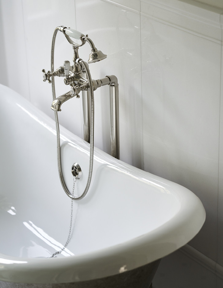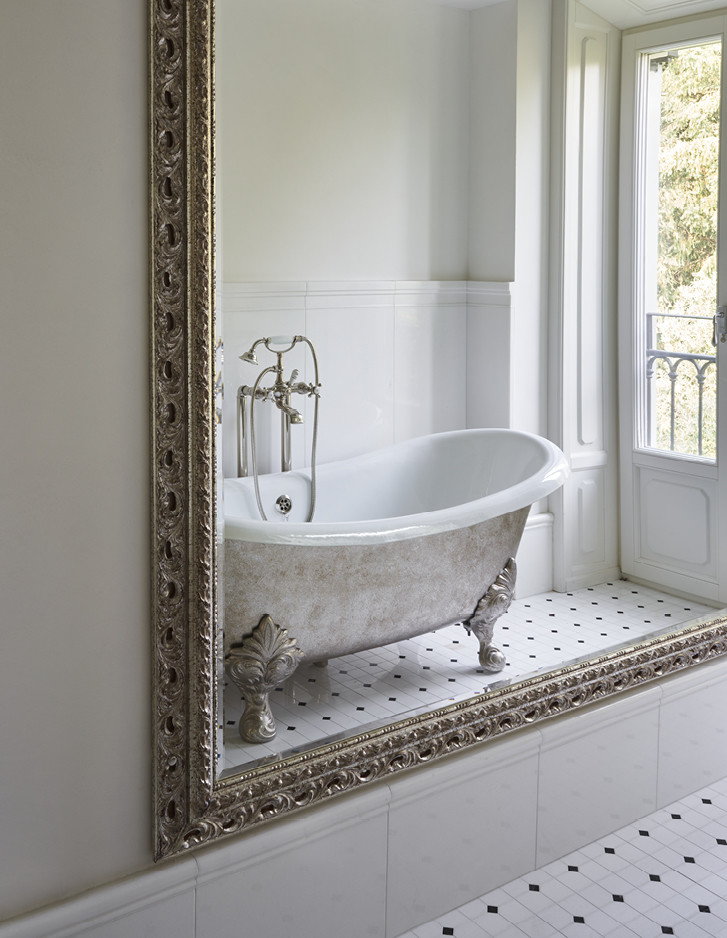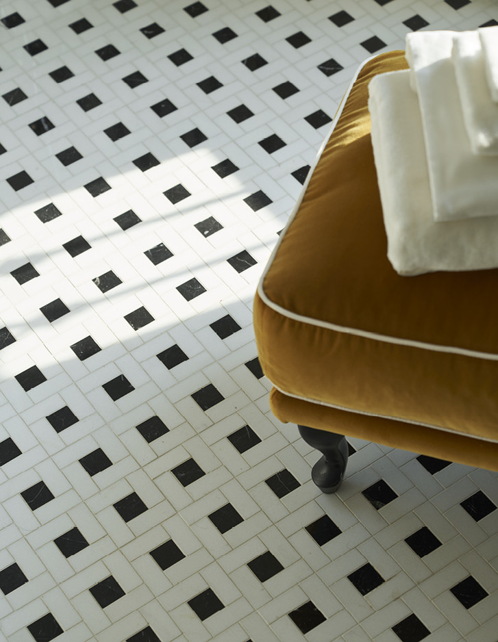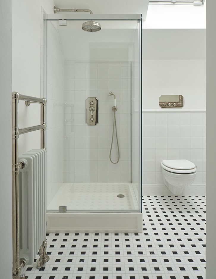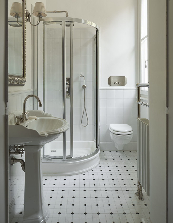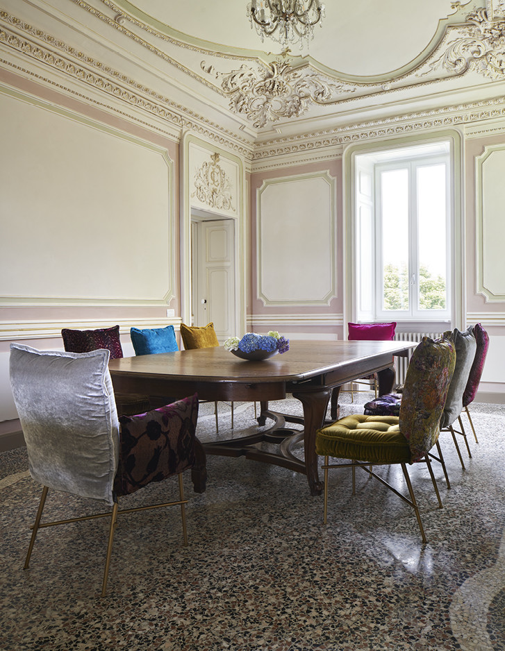 Diese prächtige neoklassizistische Villa, die seit 1878 am Ufer des wohl romantischsten der kleinen norditalienischen Seen liegt, ist heute das Feriendomizil einer italienischen Familie. Dank der umfangreichen, auf Erhaltung ausgerichteten Restaurierung durch das Architekturbüro BERTOLINI GALLI konnte die mondäne Atmosphäre vergangener Zeiten bewahrt werden, indem die Raumaufteilung und die wertvollen Originalausstattungen erhalten blieben. In den acht Badezimmern lassen die Geometrien der Fußböden, der neoromantische Stil der freistehenden Badewannen, der Vintage-Charakter der Handtuchwärmer, die Anklänge an das 20. Jahrhundert der Armaturen, die sachliche Eleganz der Keramikverkleidungen, der Charme der Lampen und Spiegel und die auf Weiß, Schwarz und neutrale Farben konzentrierte Farbpalette die Erinnerung an einen faszinierenden und geschichtsträchtigen Ort aufleben.