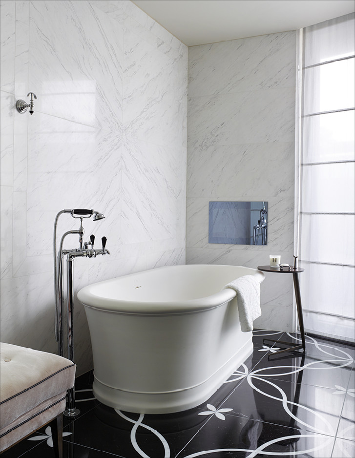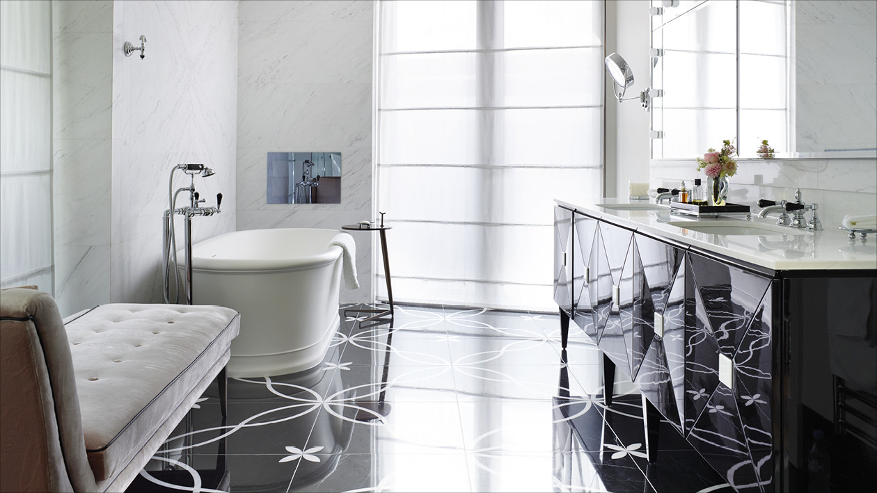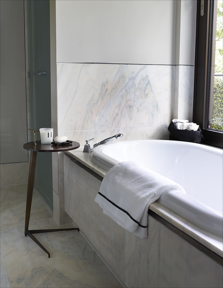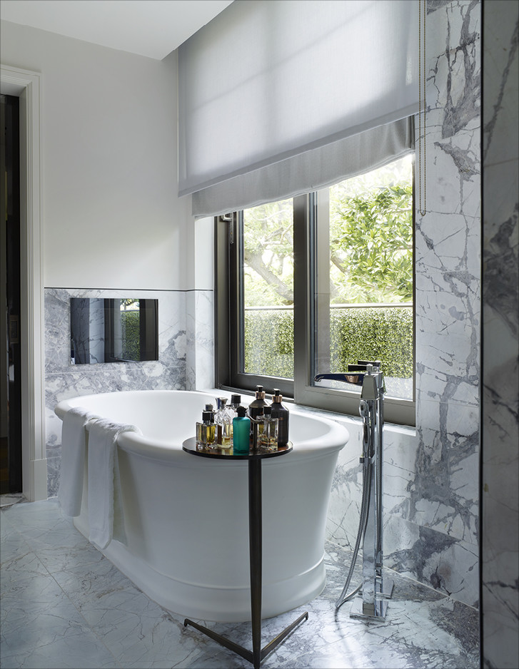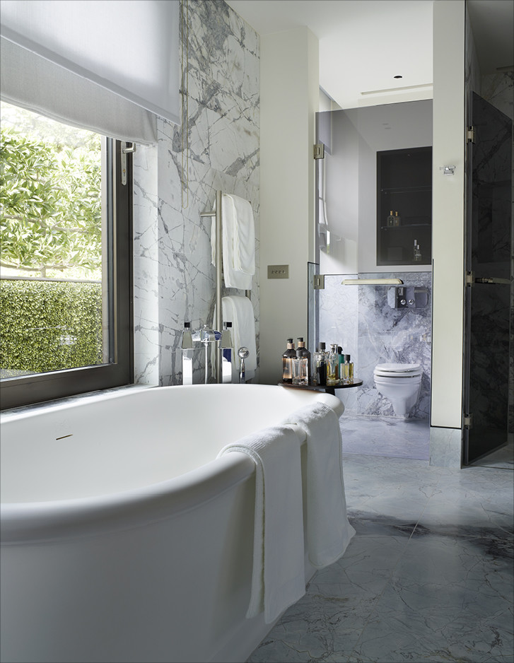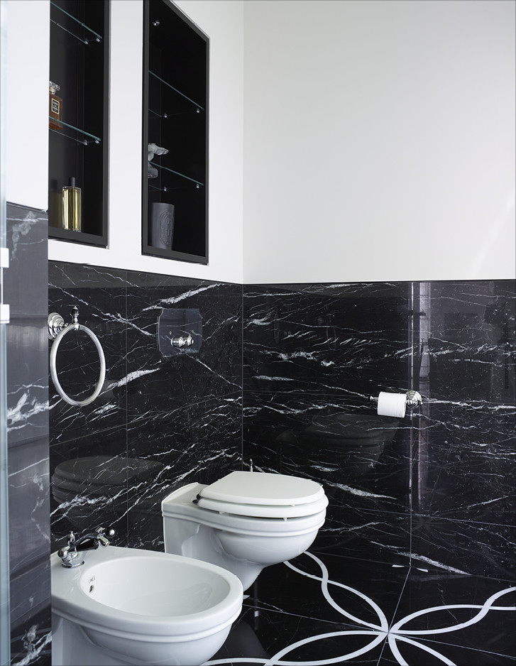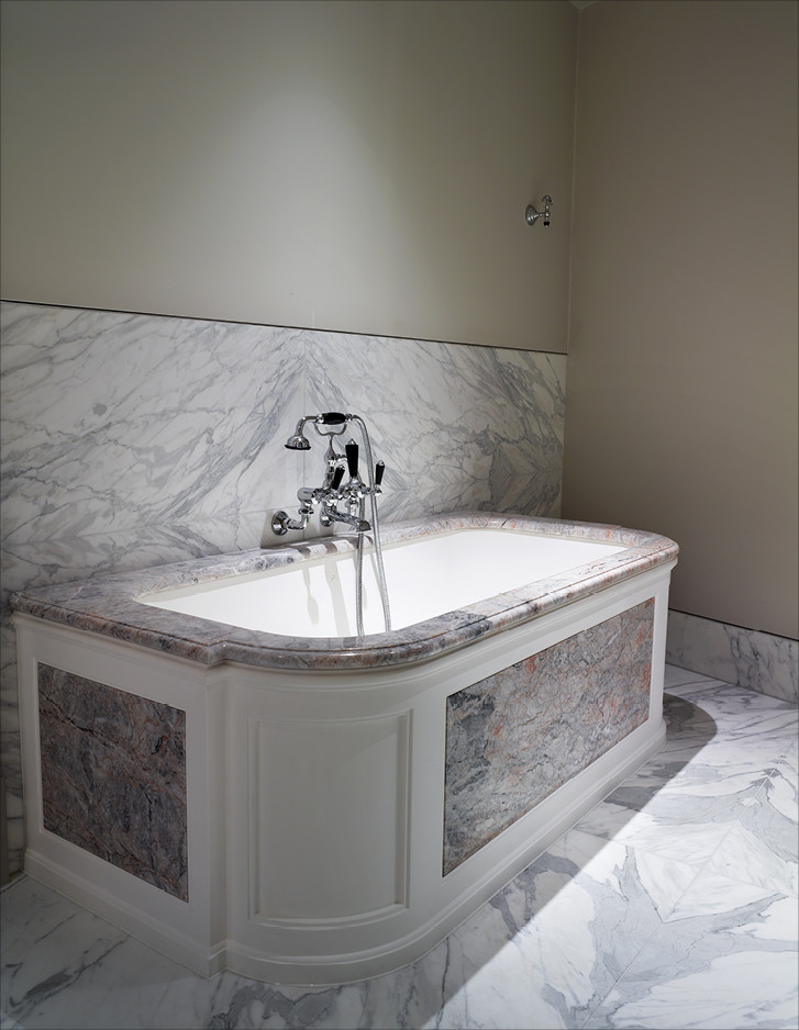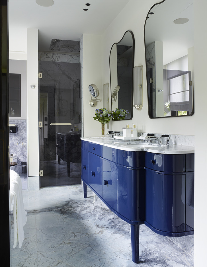 Unweit von London errichtete Harrison Varma eine repräsentative Wohnanlage mit zwanzig Einheiten, SPA, Hallenband und Kino inmitten eines großen Parks. Die Badezimmer der drei exklusiven Penthäuser sind im kompletten Devon&Devon-Look gehalten, mit den Bodenbelägen Prestige, den Badmöbeln Jet Set, Bentley, Season, Double Music und Jazz3, den Waschtischen Premiere, den Badewannen Celine und President, der Sanitärkeramik Blues und den Bad-Accessoires Black Diamond und Time.