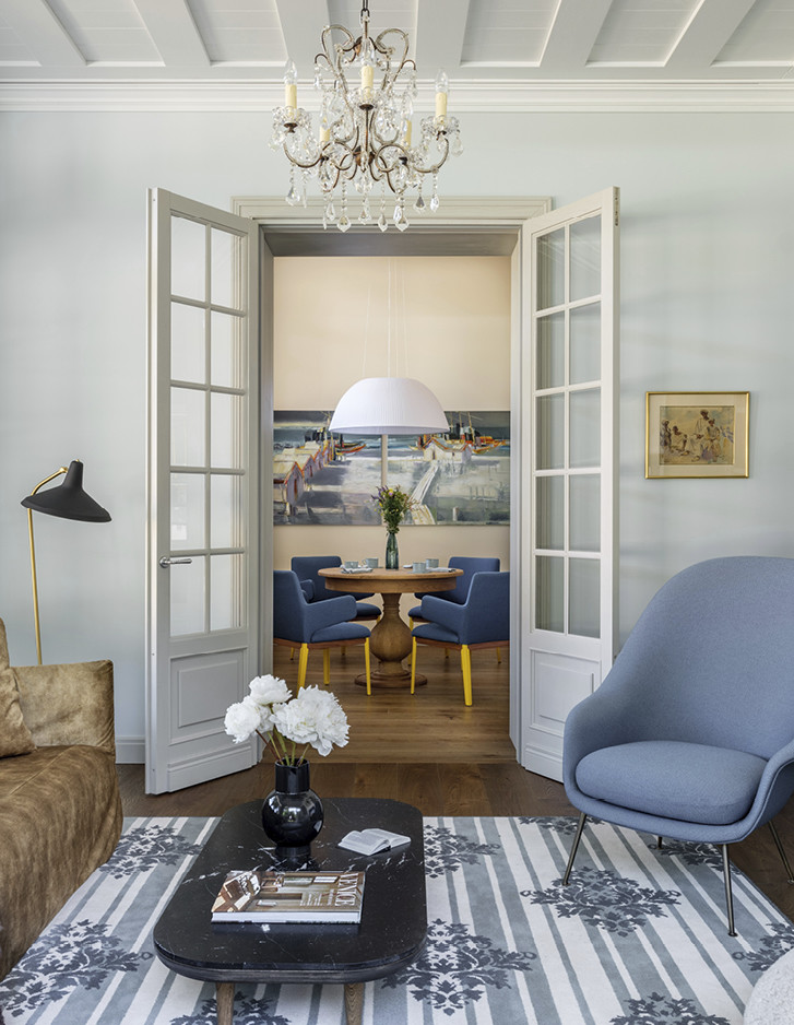 Anhand präziser Recherchen über die Geschichte des Gebäudes und des Genius loci einer zwischen Südrussland und dem Kaukasus gelegenen Stadt gelang es den beiden Innenarchitektinnen, die Retro-Atmosphäre des Gebäudes zu bewahren und den Wunsch der Auftraggeber, es so zu gestalten, als wäre es bereits seit einem Jahrhundert ihr Familiensitz, in jeder Hinsicht zu erfüllen.