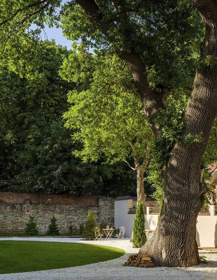 Ein großer Garten mit einer dreihundert Jahre alten Eiche umgibt dieses prächtige historische Wohnhaus, das 1912 von einem Architekten als Familienanwesen erbaut wurde. Das während der Sowjetzeit in kleine Wohnungen unterteilte Haus wurde von Mia Karlova und Elena Zufarova in seiner ursprünglichen Pracht restauriert.