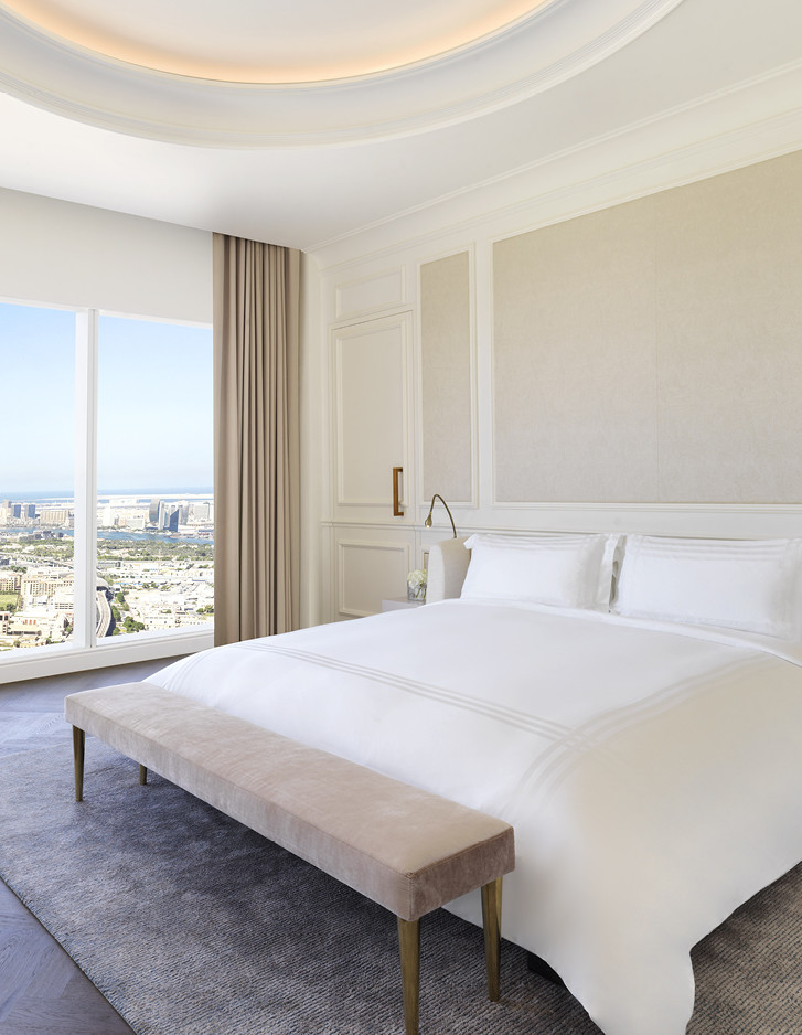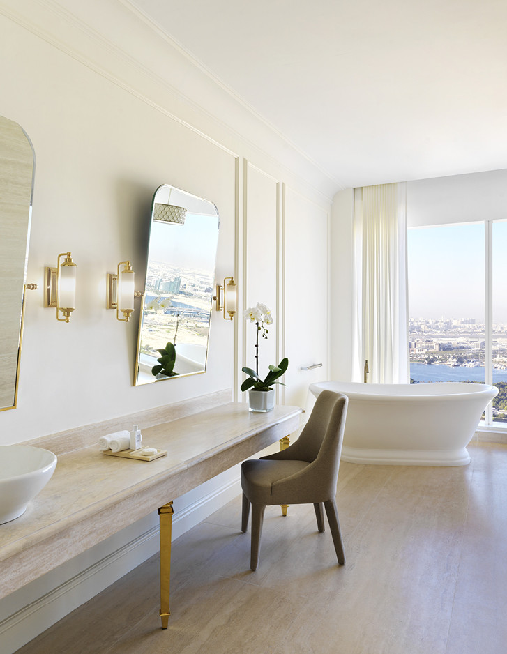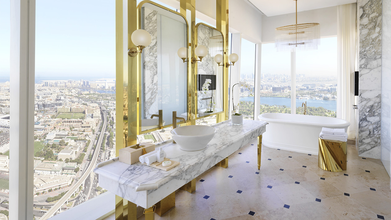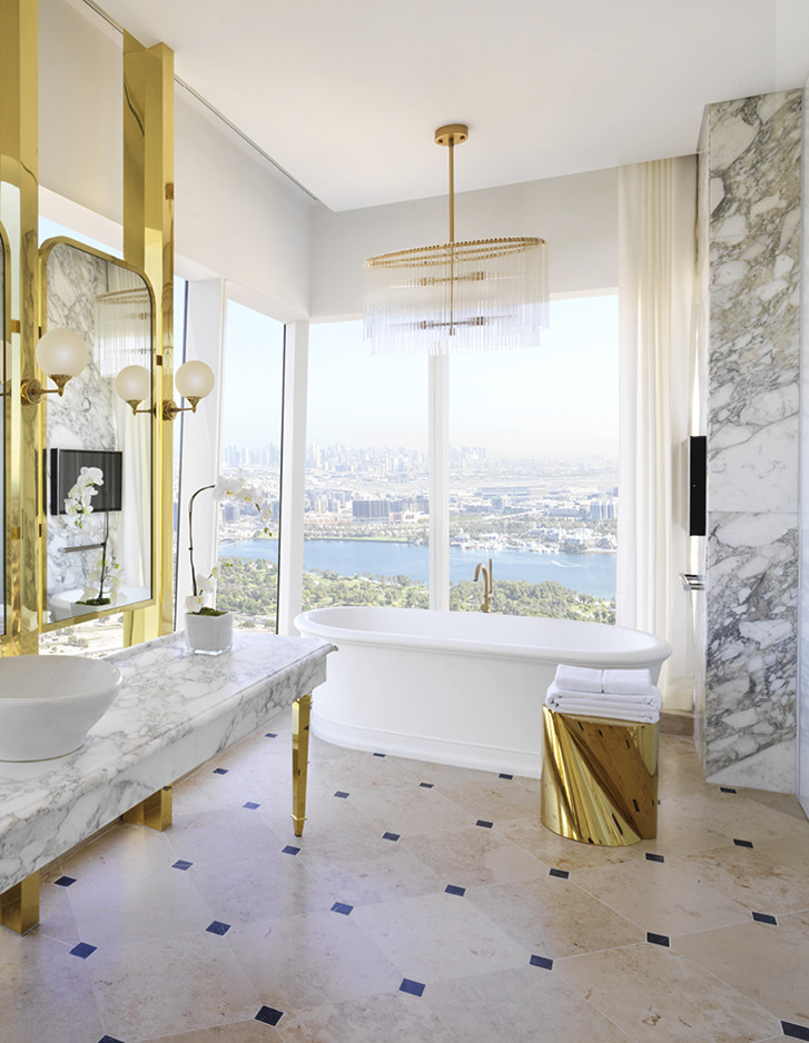 Das Sofitel Dubai The Obelisk wurde Ende 2020 in einer der exklusivsten Gegenden Dubais eröffnet und entwickelte sich sofort zur ersten Adresse für besonders anspruchsvolle internationale Gäste. Man erkennt es unmittelbar an seiner imposanten Silhouette, die eindeutig an die des Obelisken in Luxor angelehnt ist. Das kulturelle Erbe des alten Ägyptens, neu interpretiert im Art Déco-Stil, ist das markanteste Element der Gemeinschaftsbereiche, die sich durch eine Vielzahl verzierter Säulen mit vergoldeten Kapitellen, hohe Portale mit polychromem Stuck, vollständig mit Blattgold überzogene Statuen, mit Swarowski-Kristallen besetzte Kronleuchter und einen großen Pool in Form des Nilschlüssels auszeichnen. Ebenso luxuriös, aber zeitgemäßer und vollständig digitalisiert, verfügen die 595 Zimmer und Suiten über große Fenster, die einen einzigartigen Blick auf die Altstadt, den Hafen und die Skyline von Dubai bieten. Das Glanzstück des Hotels bildet die 500 Quadratmeter große Imperial Suite, die neben der „Kleopatra“-Präsidentensuite und der „Napoleon“-Botschaftersuite vom Studio Duccio Grassi Architects entworfen wurde. Bei allen Badezimmern wurde die unverwechselbare Eleganz und der europäische Charme der ikonischen Badewannen Aurora und Celine gewählt.